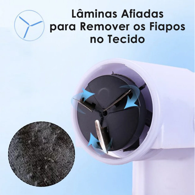 O CleanMax® possui duas lâminas rotativas que removem as bolinhas do tecido sem danificá-lo. As lâminas são acionadas por um motor elétrico, que garante uma remoção rápida e eficiente.